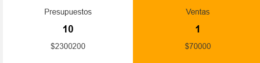 En este caso, está mostrando 10 presupuestos, y 1 venta .