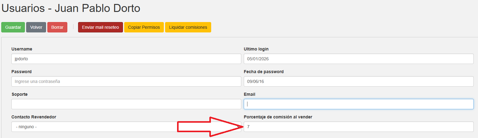 Si querés que los vendedores reciban una comisión de la venta que realizan, primero tenemos que asignar el porcentaje de comisión dentro del usuario.