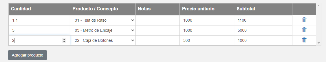 Después de elegir y cargar los datos del cliente o seleccionar “Consumidor Final”, tendremos que cargar los productos o conceptos que se van a vender.