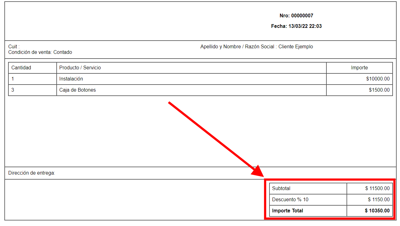 Este descuento va a aparecer especificado en la impresión del pedido tanto como en la factura.