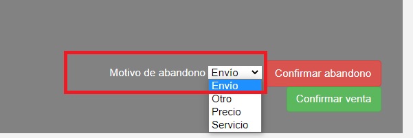 Finalmente, este botón marca como Cancelada o Abandonada la venta. En Puestos de Ventas de productos que no llevan preparación ni cotización, como los de un supermercado, este botón no tiene mucha utilidad. Sin embargo en pedidos de taller, o ventas de productos o conceptos que llevan cotizaciones, el botón de "Abandonar" cancela la venta y sirve para efectuar luego análisis estadísticos que muestren la causa de que no se pudo efectuar la venta, de forma que podamos conocer mejor nuestro mercado y nuestros clientes.
