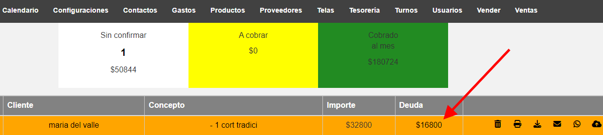 Si alguna venta tiene deuda, al hacer click en la deuda de esa venta nos va a llevar a la pantalla Cobrar, directamente.