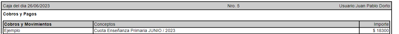 Al cerrar la caja, se va a poder ver el Informe de Caja, que comienza especificando cada Venta y cada Cobranza...