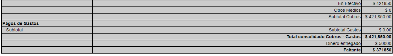 ... y termina con un resumen de los medios de pago para ese Informe de Caja.