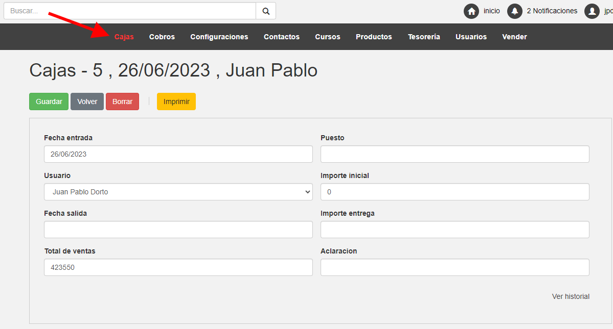 Aclaración: El sistema de Caja Diaria sirve para controlar la actividad de sólo un usuario. Si lo que vos buscás es saber el volumen total de cobranzas o ventas de la empresa debés ir a Informes por Periodo .