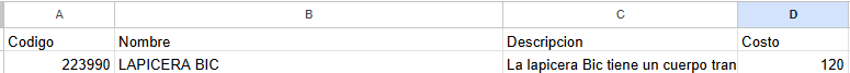 Veamos, con el código 223990 encontramos la LAPICERA BIC que nos informa que el costo es de $120.