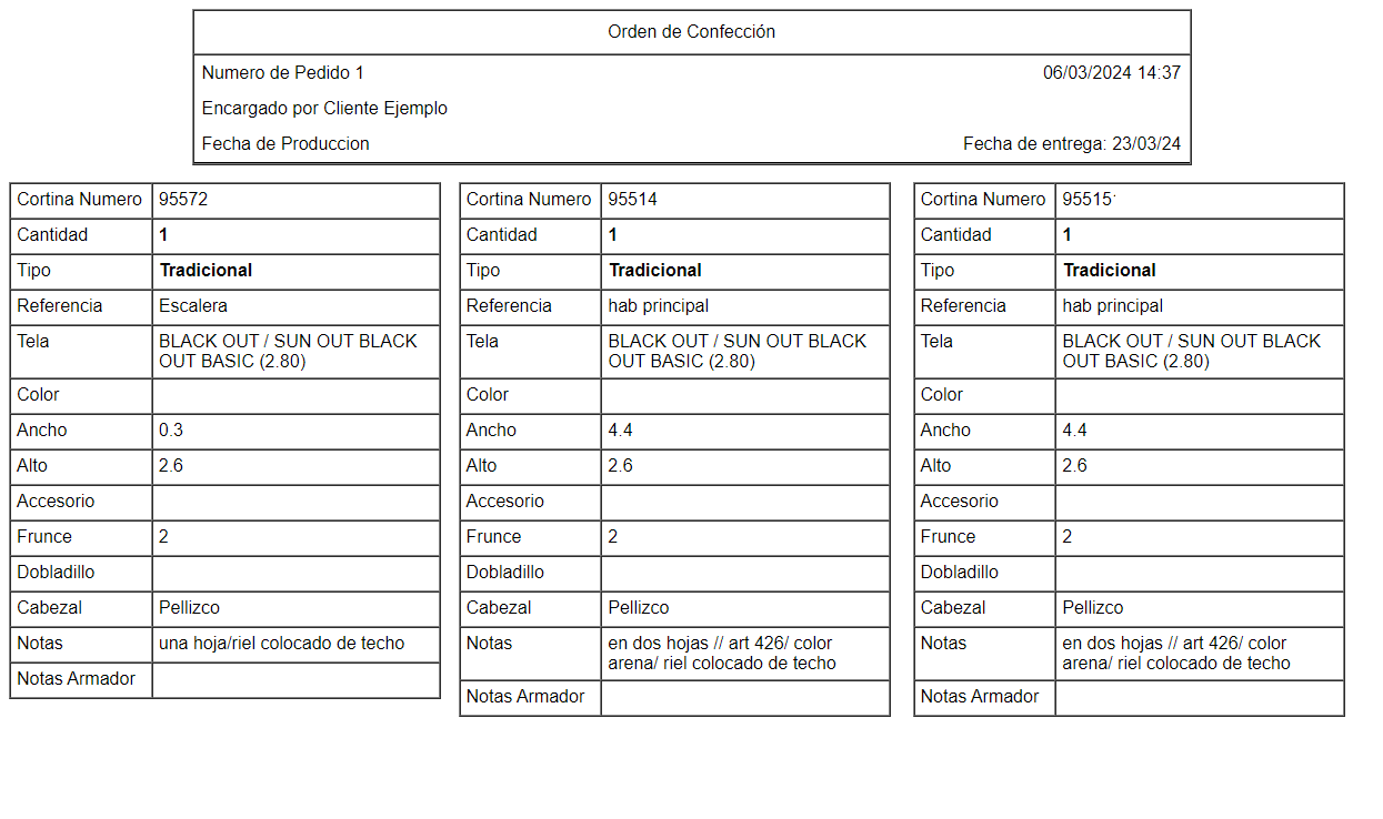 La Orden de Armado incluye todo el detalle necesario para fabricar los productos del pedido, con sus características. Esta orden no es simplemente un resumen de lo pedido, ya que el Pedido o Factura que le llega al cliente por email solamente refleja lo que pidió el cliente, y la Orden de Armado tiene indicaciones que el cliente no especificó pero son necesarias para fabricar el pedido.