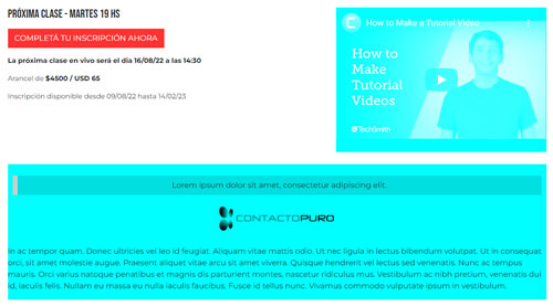 Descripción: Solo aplica para los cursos con inscripción. Al ser un campo con campo enriquecido es muy versátil para presentar toda la información pertinente de la manera que te resulte más adecuada.