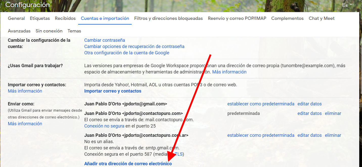 Luego, seleccioná “Añadir otra dirección de correo electrónico”