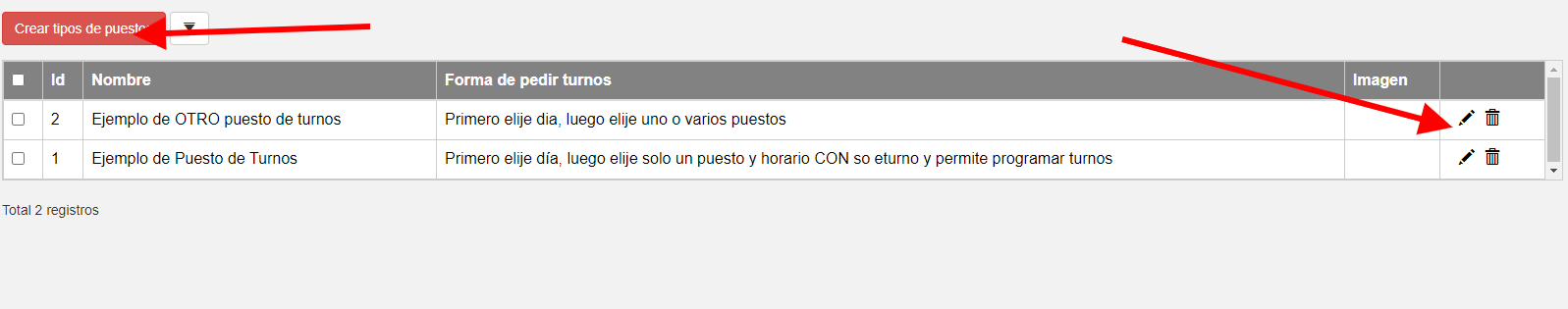 Los turneros pueden tantos puestos como te sean necesarios. Aquí en el ejemplo vienen dos configurados. Vamos a editar el primero, el que se llama Ejemplo de Puesto de Turnos.