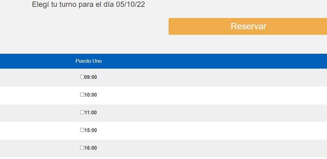 - Si en cambio estamos reservando el turno desde el administrador interno de cada plataforma, el turno se va a reservar inmediatamente y se muestra la opción de imprimir una planilla de constancia.