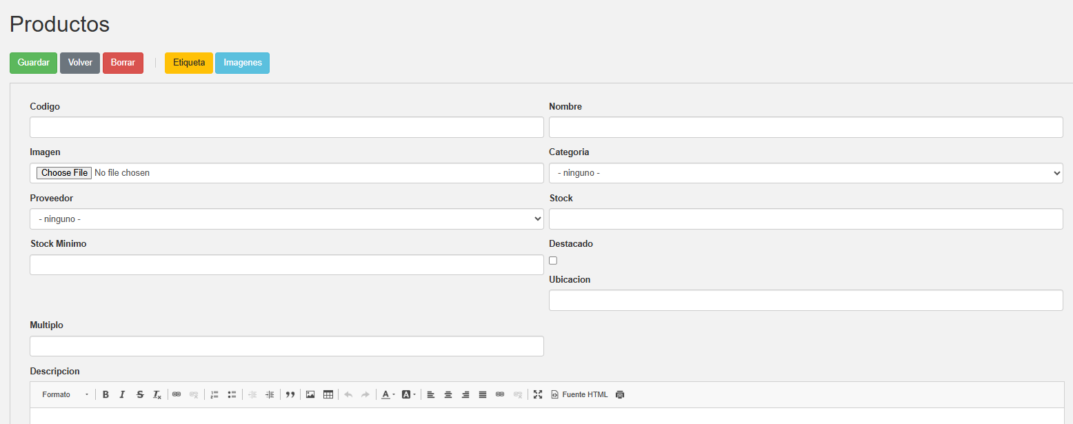 El campo mínimo para cargar un producto es el “nombre”. Pero si estás queriendo mostrar tus productos en tu web, estaría bueno que cargues también una imagen por cada producto y que elijas una categoría para que se vean más ordenados. Los compradores quieren saber la mayor cantidad de información de lo que están comprando. Pensá cuando vos estás del otro lado del mostrador comprando ¿no te gustaría tener la información más completa antes de decidir tu compra?